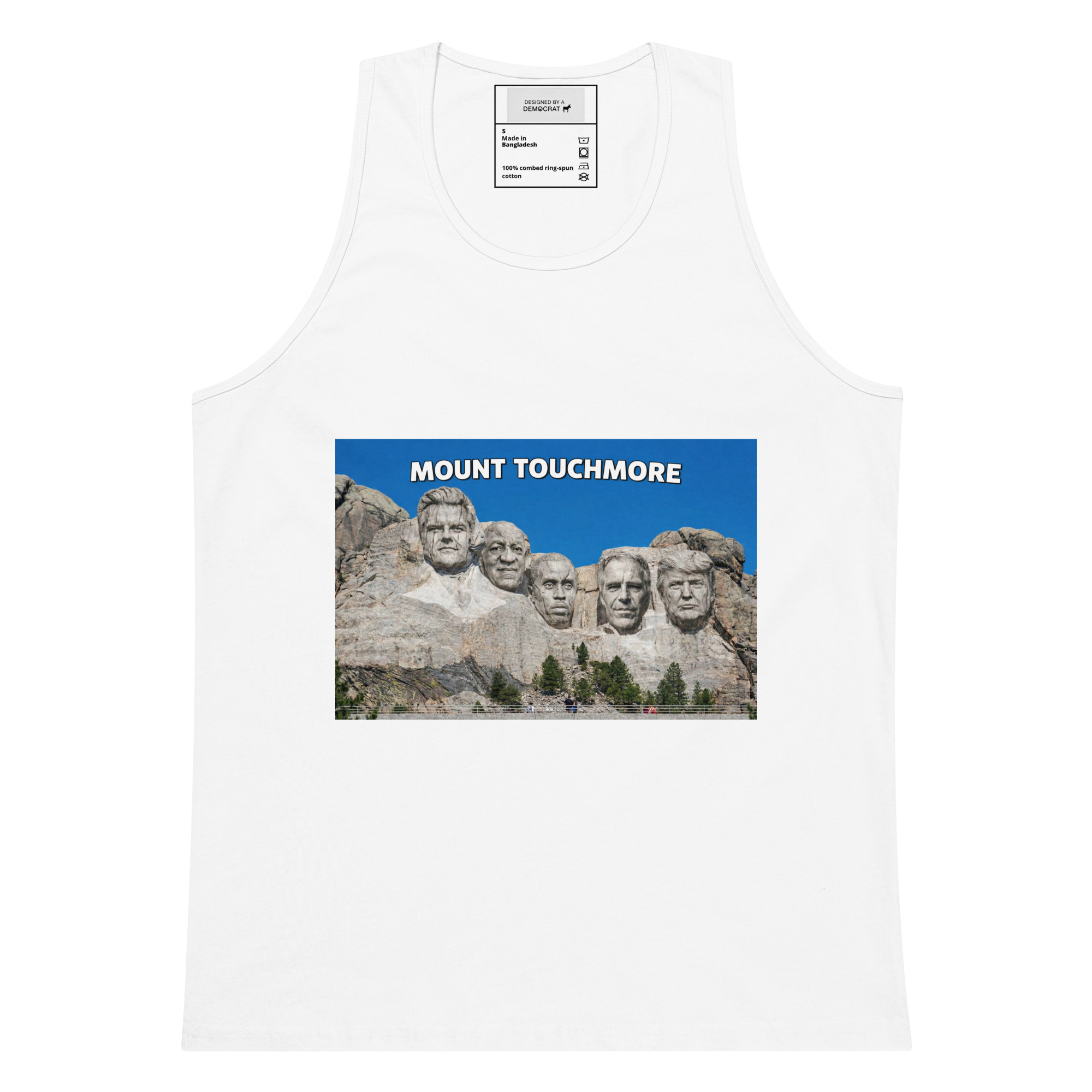 The Mount Touchmore design hits a little different on a tank. Same bold, satirical artwork, but built for warm days, workouts, and anywhere sleeves would just get in the way. It’s sharp enough to stand on its own and comfortable enough to live in.